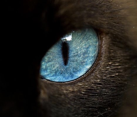 The same applies to the irises of cats with the Himalayan mutation. Because there is little to no melanin to otherwise interfere or reflect, white light bounces off the microscopic molecules in the melanin-lacking iris — and only the blue wavelength scatters around, eventually reaching our eyes to be seen.