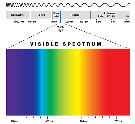 The crowding of these additional particles in the atmosphere then tightens the spaces through which light waves can pass. The red, orange, yellow, and green waves that normally glide around the particles have less room, and are now bouncing off these extra particles as only the blue waves usually do. Therefore not only threads of blue light are visible, but various other light wavelengths as well. When all wavelengths bounce equally, it becomes almost white. [10]