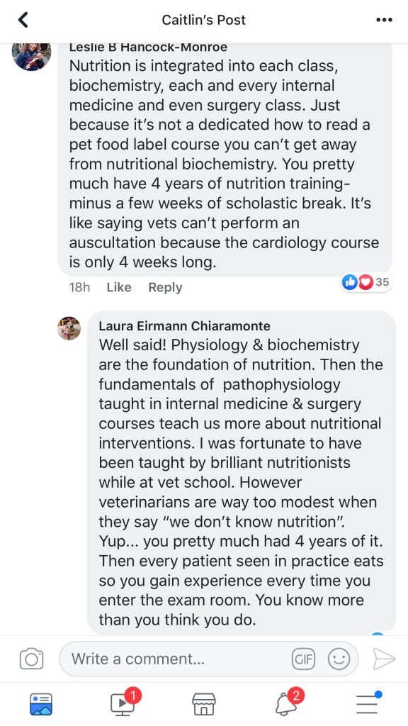 Here are just a few examples of what we receive regarding nutrition, not including our yearly Continuing Education requirements (13-15 hours for Techs/Nurses, 28-32 for Doctors) in order to keep and maintain our licenses. This doesn’t even touch on Doctors who are board-certified in nutrition, as they take an additional 1-2 years of coursework and a residency literally ONLY about nutrition.